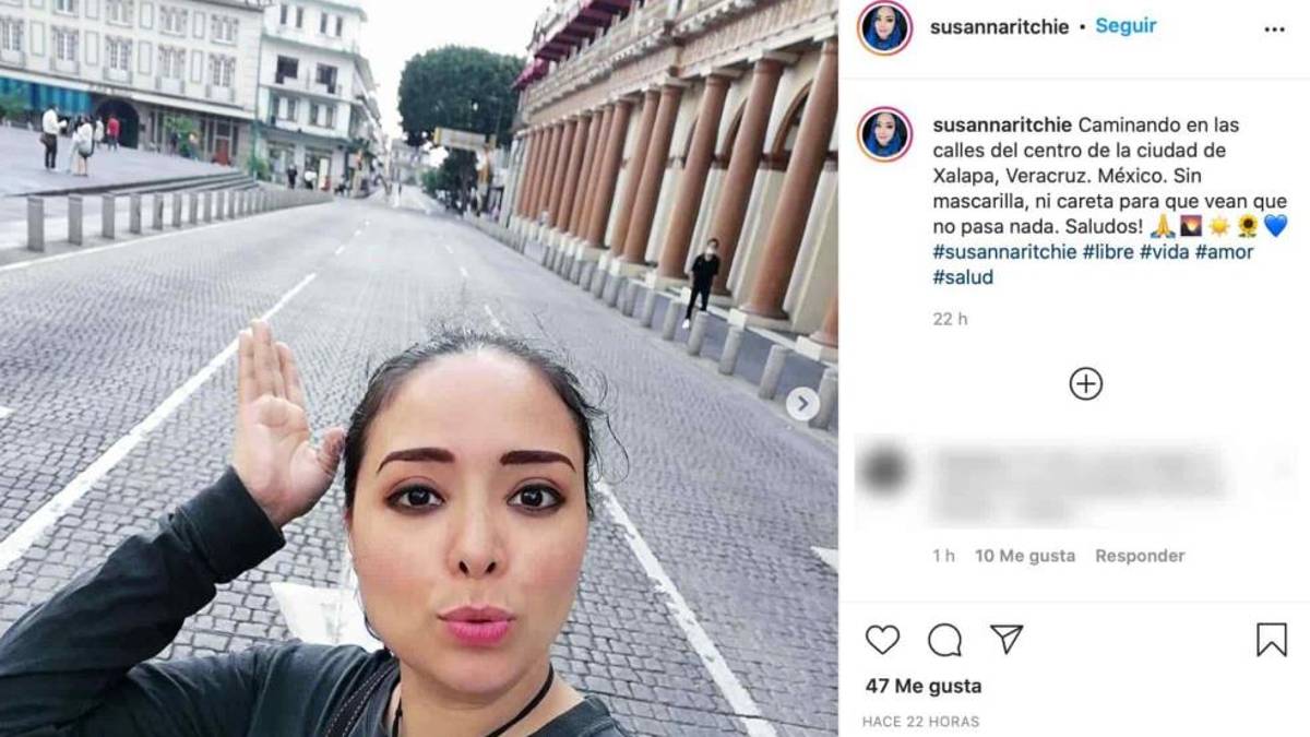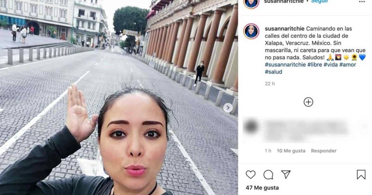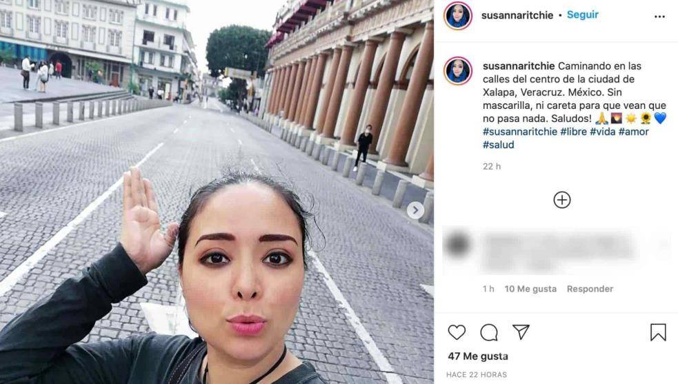 Cabe destacar que las autoridades determinaron la obligatoriedad del uso de cubrebocas en Xalapa; sin embargo, en sus redes sociales Sussana Ritchie promueve no usar estos productos con imágenes como "paremos el contagio del miedo" y "No + mentiras", con la imagen tachada de un cubrebocas.