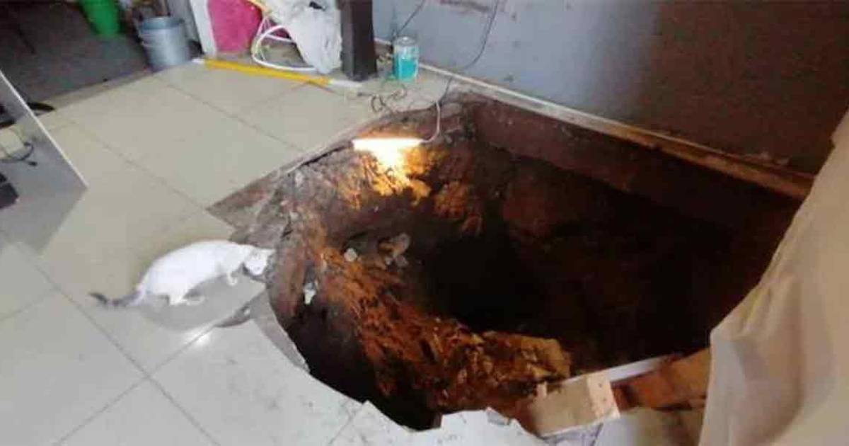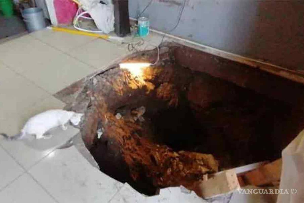 El socavón es consecuencia de un “narcotúnel” que atraviesa varias calles en el sector y que fue descubierto por las autoridades en 2011.