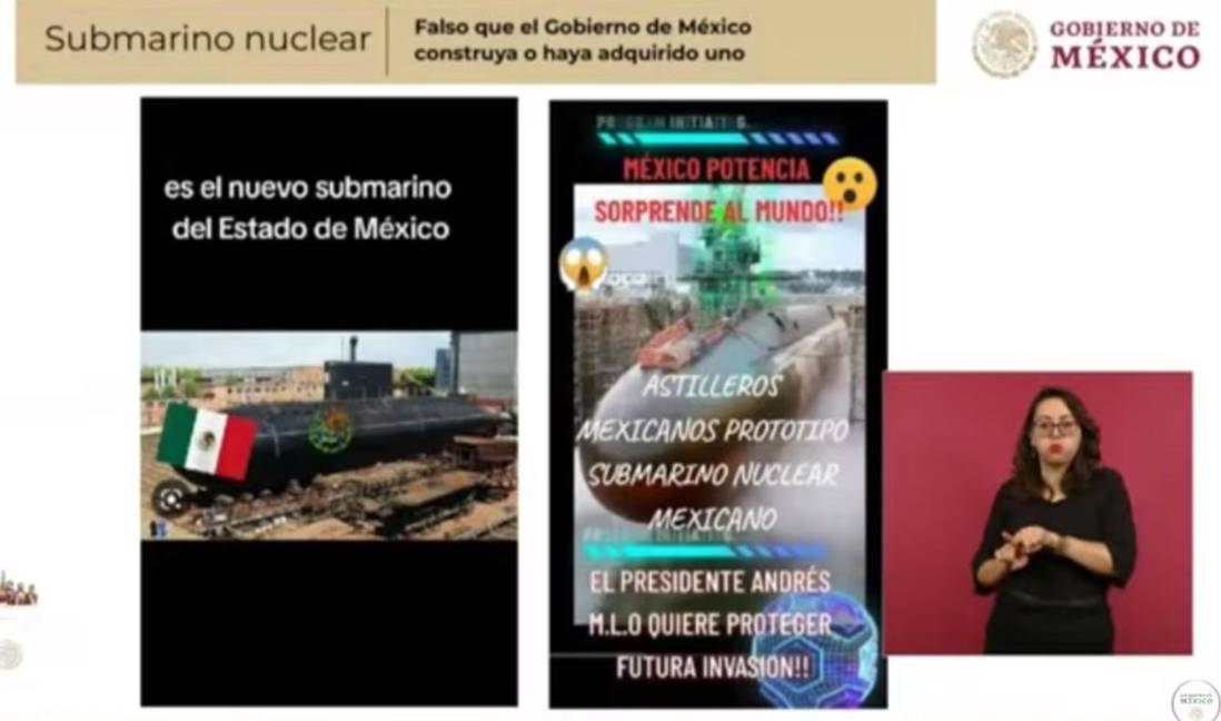“Es tan absurda está información que no la íbamos a exponer, pero dado que sigue circulando, mejor dejamos claro que no existe el submarino mexicano, solo en la imaginación de quienes navegan en un mar de mentiras”, declaró la funcionaria federal.