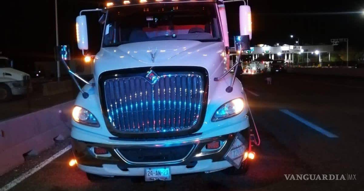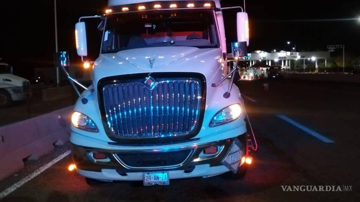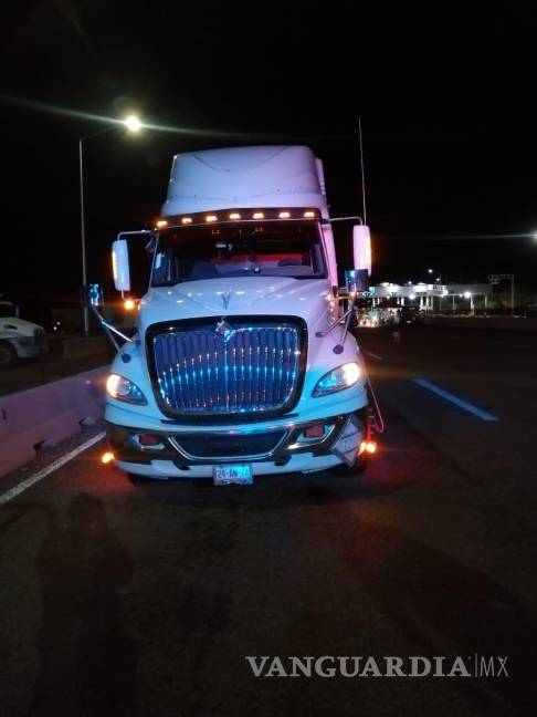 Se decomisaron tres tractocamiones en color rojo, azul y blanco de la marca Kenworth que pertenecen a la empresa Autotransportes y Servicios STN S.A de C.V.