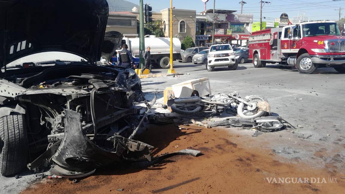 Monterrey, Nuevo León.- Un accidente vial tipo carambola dejó un saldo de 6 personas lesionadas, entre ellas, el conductor de una motocicleta el cual terminó envuelto en llamas y fue captado por cámaras de seguridad de la zona, en Nuevo León.