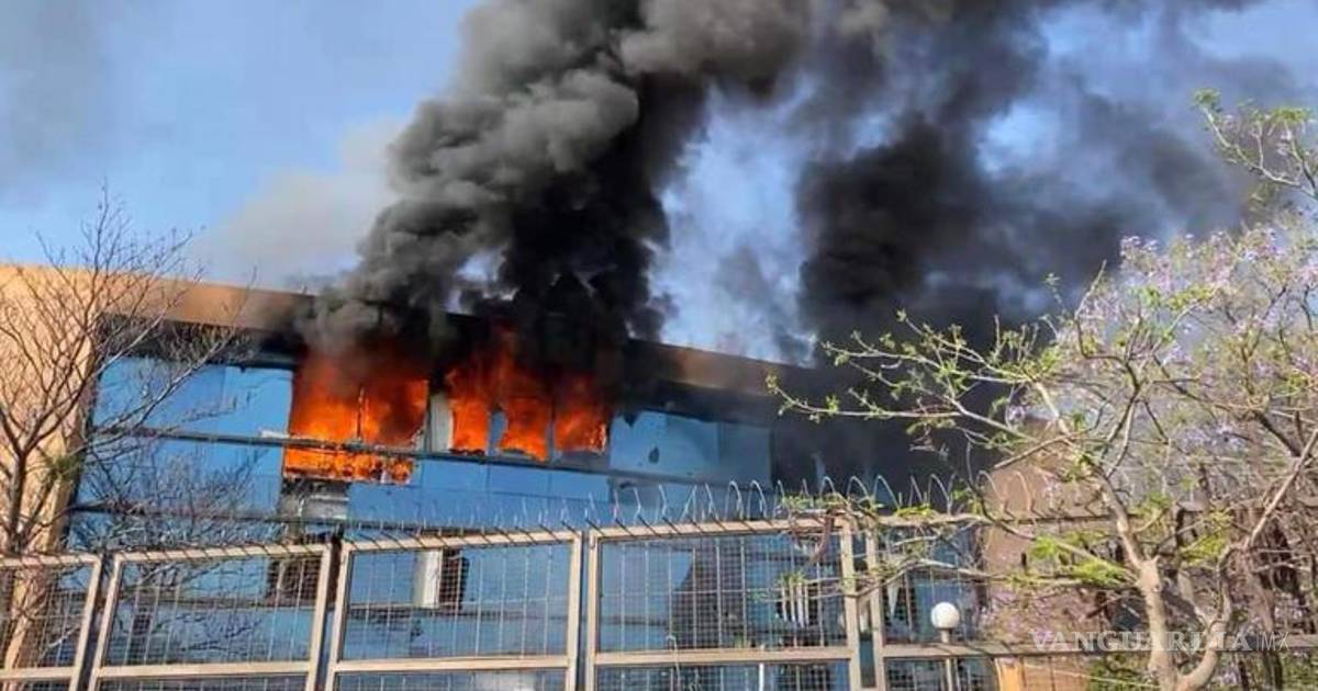Los estudiantes llegaron en varios autobuses y descendieron para dirigirse al edificio Tierra Caliente donde prendieron fuego a diversos objetos.