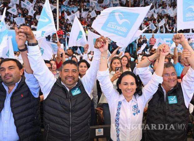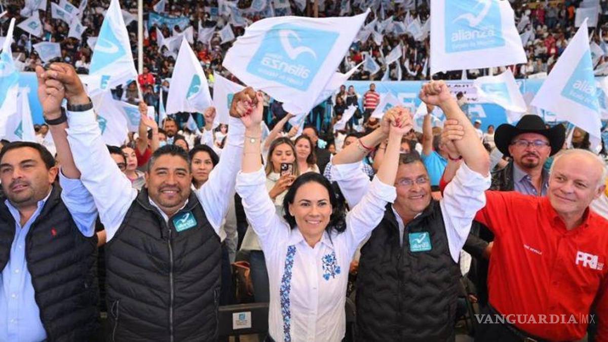 “Hoy el Estado de México necesita lo mejor todas y todos nosotros, de sus mejores guerreros, de los aliancistas que no se achican frente a las dificultades para que esta tierra, esta bendita tierra mexiquense, tenga un futuro de reconciliación”, dijo Alejandra del Moral frente a los asistentes.