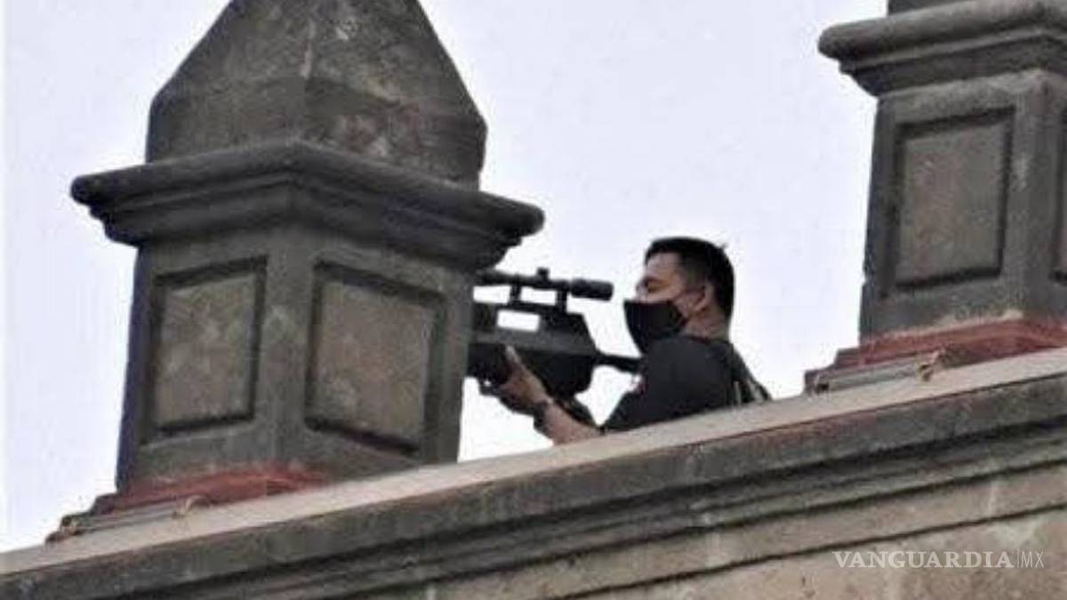 Usuarios en redes sociales tales como X, Facebook, Threads y TikTok divulgaron una imagen de una persona con un rifle apostado en Palacio Nacional