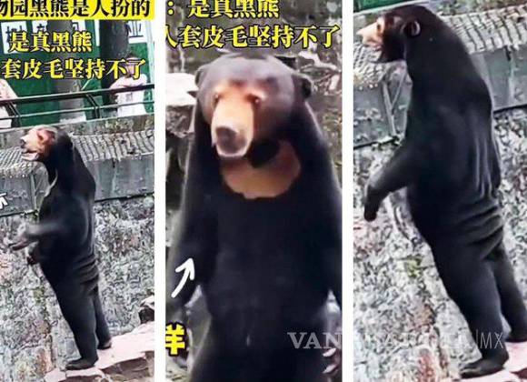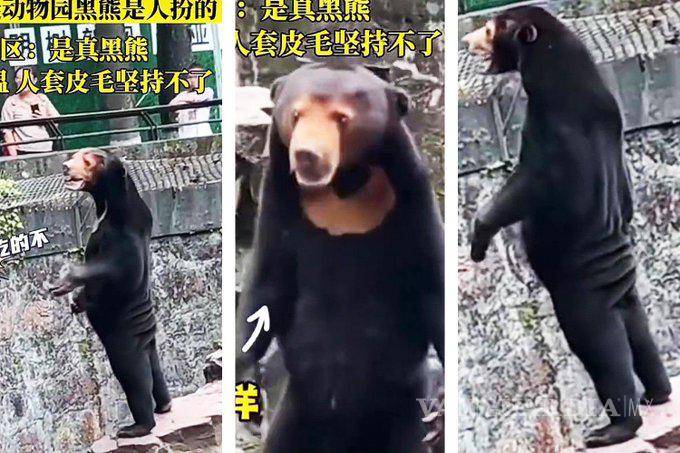 Se trata del oso malayo de pie sobre sus patas traseras, que generó especulaciones entre los usuarios chinos, sin embargo, el zoológico de la provincia oriental de Zhejiang insistió en que realmente es un oso, únicamente que más pequeño y diferente y a lo que la gente está acostumbrada a ver.