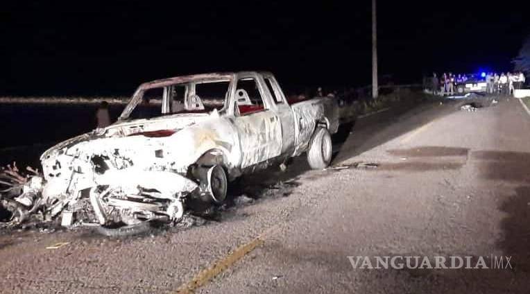 Tres jóvenes murieron y uno más resultó herido de gravedad, tras un choque entre una camioneta y dos motocicletas en la carretera hacia el campo pesquero Las Aguamitas, en Navolato, Sinaloa.