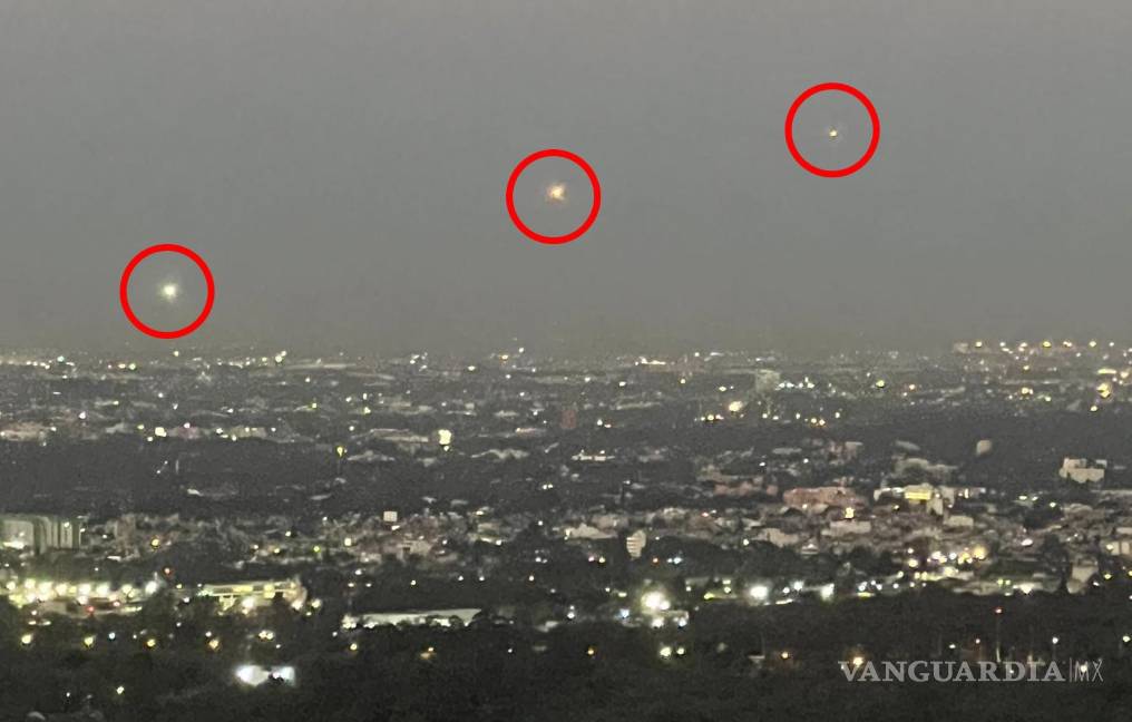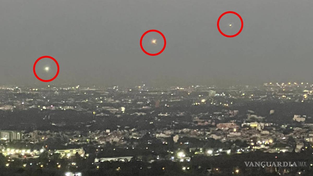 En las fotografías es posible apreciar con mayor detenimiento los extraños objetos, dos de ellos reflejan luz blanca, mientras que el que se encuentra en la parte centro presume una intensa luz roja y anaranjada.