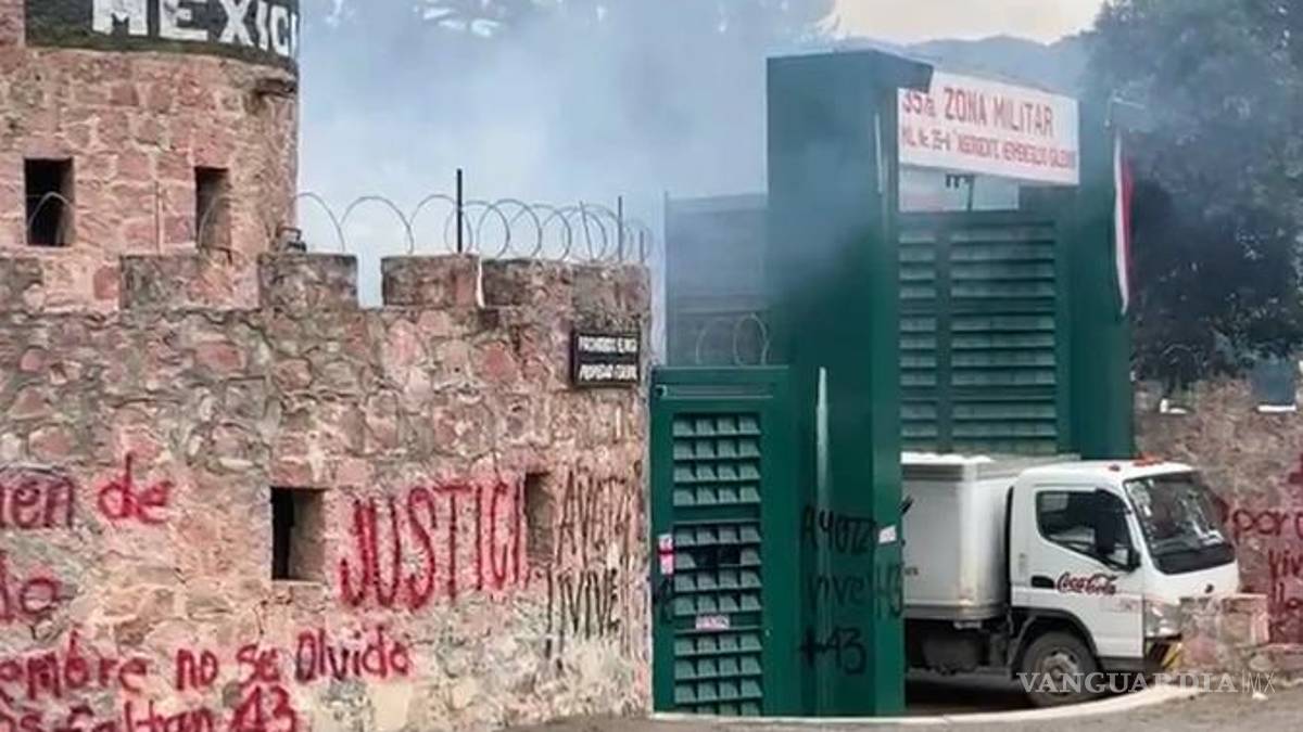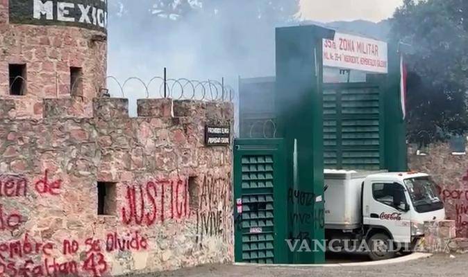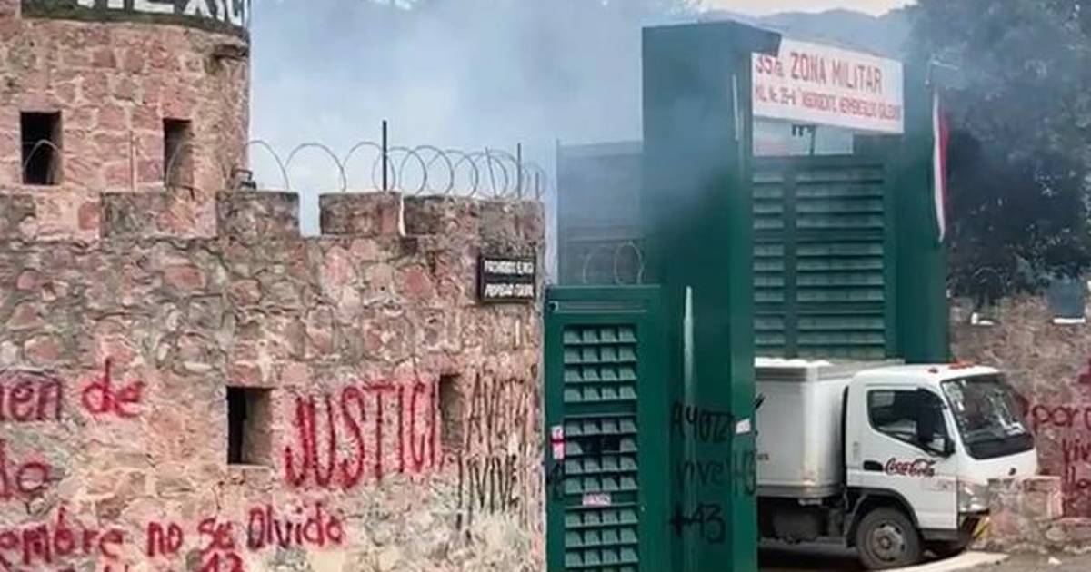 Padres de los 43 de Ayotzinapa y activistas estrellan camión contra cuartel militar en Guerrero