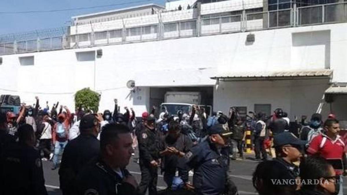 Luego de realizar un discurso, un grupo comenzó a realizar pintas, pegó estampas, lanzó piedras y petardos, y por último tomó un camión de la empresa “Swiss” para destrozar la puerta principal de las instalaciones ubicadas en la Avenida Eje Sur 3, número 43, en la Colonia Doctores, Alcaldía Cuauhtémoc.