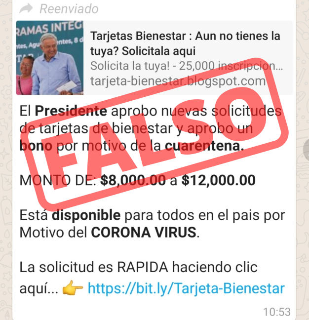La alerta es en relación a publicaciones en Facebook donde se pide a la gente contactar a un número telefónico para poder acceder a beneficios tales como la pensión para adultos mayores, para personas con discapacidad, apoyos para niños y niñas, hijos de madres trabajadoras, ‘Jóvenes construyendo el futuro’, ‘Sembrando vida’ y Bienpesca, entre otros programas.