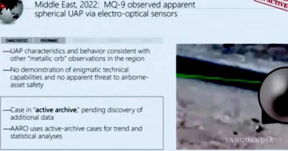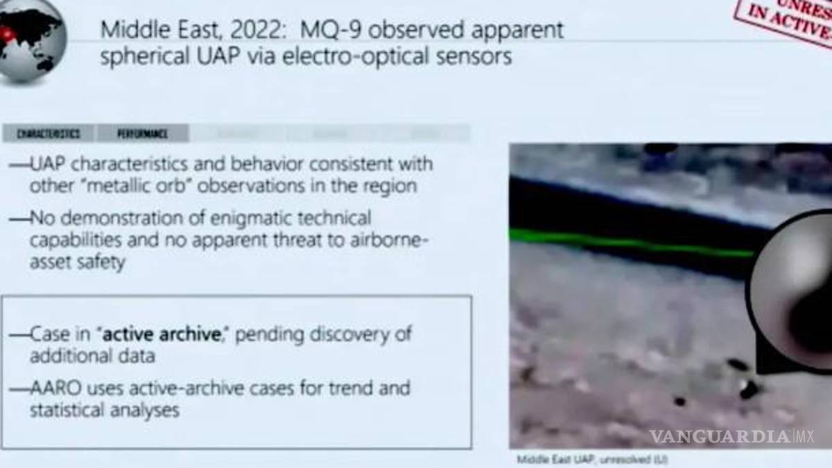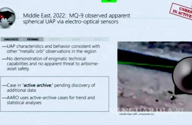 Señaló, sin embargo, que AARO no cree que el objeto presente ninguna “amenaza aparente para la seguridad de los activos en el aire” en su presentación.
