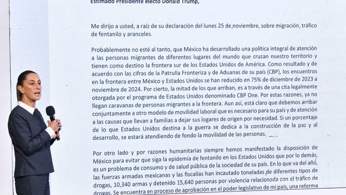 Durante la mañanera de este martes, Sheinbaum hizo pública una carta escrita a Trump, quien asumirá la presidencia de EU por un segundo periodo el 20 de enero próximo.
