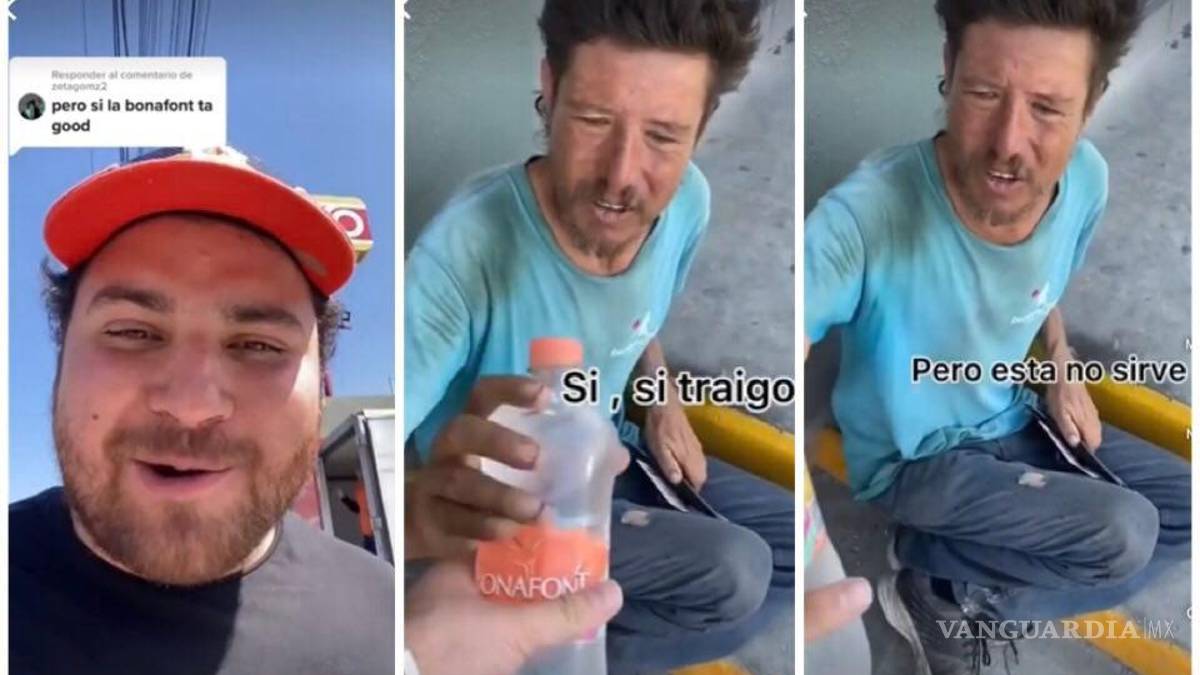 Se ha viralizado un video en el que el youtuber “Ángel soy yo” intenta regalarle a un hombre en situación de calle una botella de agua, pero él prefiere quedarse con sed a tomar agua Bonafont, en plena crisis prefiere no tomar nada a aceptar el líquido de dicha marca diciendo “Pero esa no sirve”: