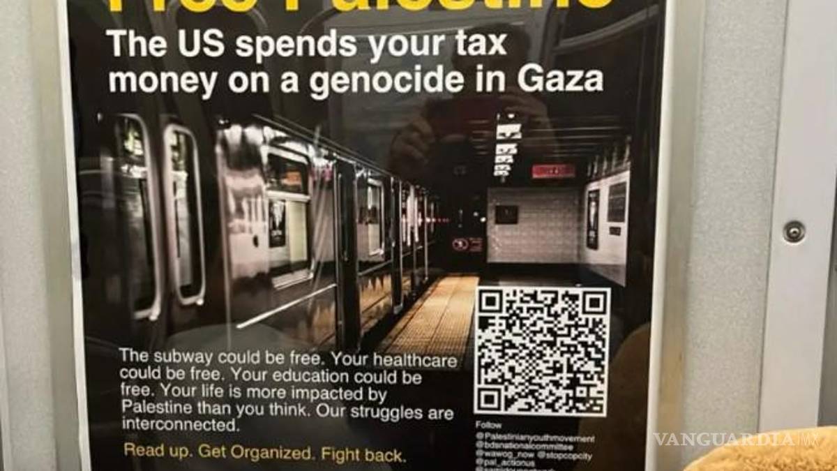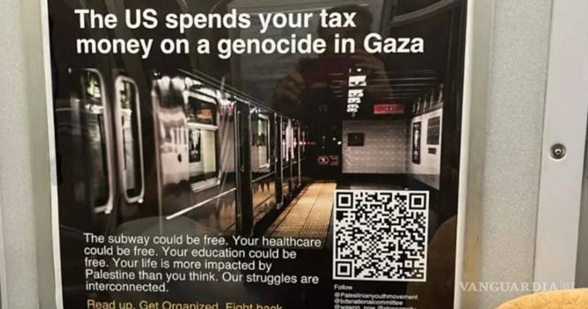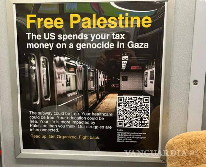 “Palestina libre. Estados Unidos gasta el dinero de sus impuestos en un genocidio en Gaza”, dice un cartel de aspecto profesional visto en un tren esta semana. "Mirada lasciva. Organizar. Defiéndete”.
