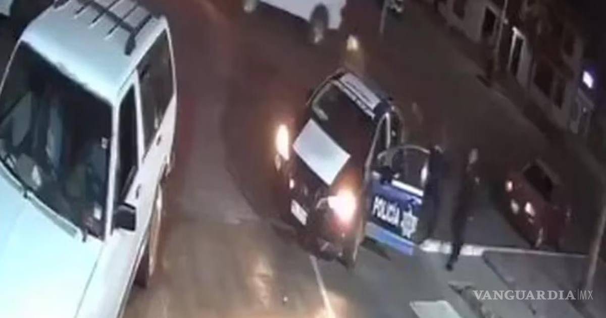 En el video se ve cuando una unidad con la torreta encendida arriba al establecimiento, de la patrulla desciende un hombre, quien maneja, y una mujer quien era su compañera, solo pasan algunos segundos cuando una camioneta tipo pick-up y un auto sedán, ambos blancos, llegan al lugar.