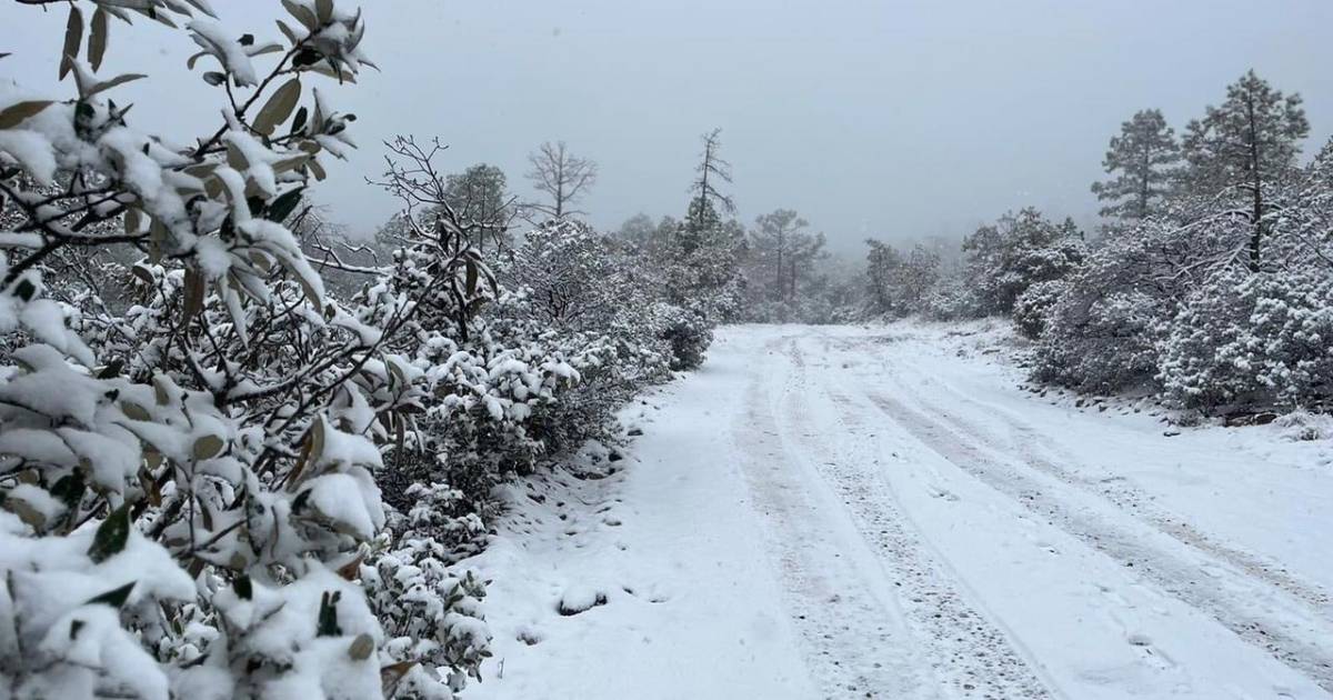 Caída de nieve o aguanieve: Sierras de Baja California, Sonora, Chihuahua y Durango.