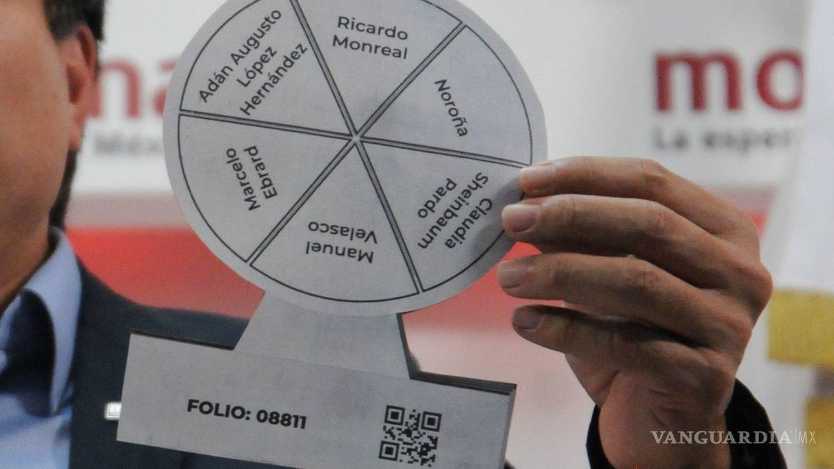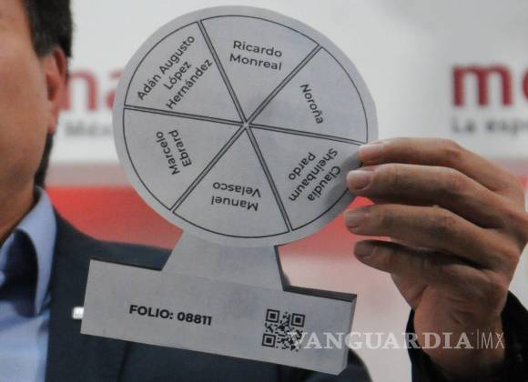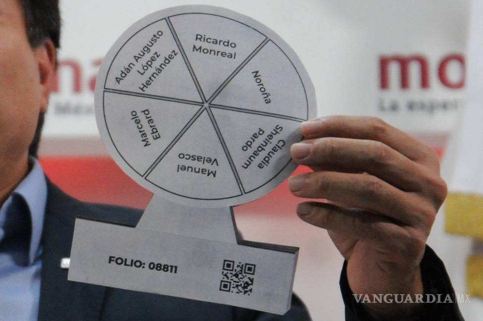 El líder nacional de Morena, Mario Delgado, presentó la boleta circular con los folios y nombre de cada uno de los aspirantes presidenciales del partido: Adán Augusto López Hernández, Ricardo Monreal, Gerardo Fernández Noroña (PT), Claudia Sheinbaum, Manuel Velasco (PVEM) y Marcelo Ebrard.