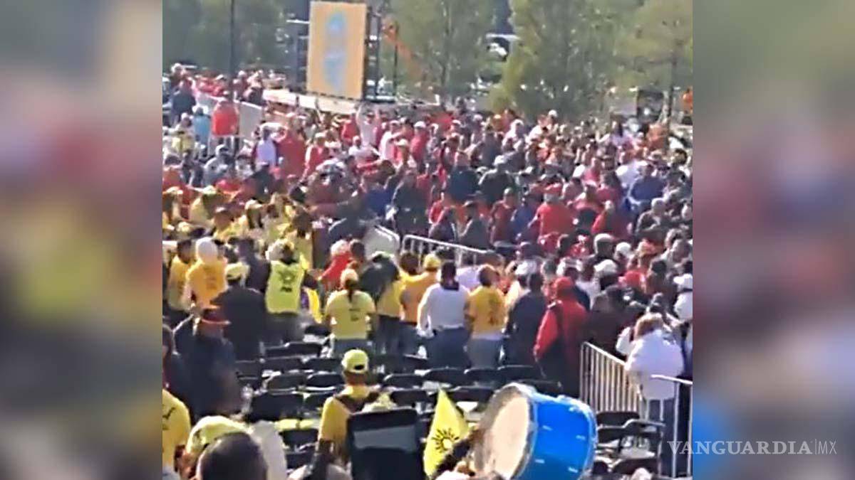 TOLUCA, EDOMEX.- El evento de cierre de campaña de la candidata por la alianza “Va por el Estado de México”, Alejandra del Moral, se vio afectado por cuestiones de violencia, debido a que simpatizanres del Partido Revolucionario Institucional y el de la Revolución Democrática comenzaron una pelea.