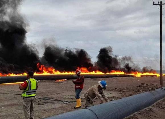 Al lugar arribaron bomberos de La Paz quienes tras varias de horas de trabajo lograron sofocar las llamas que se extendieron por la tubería.