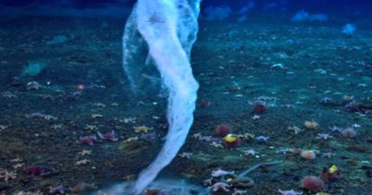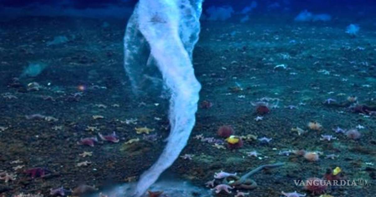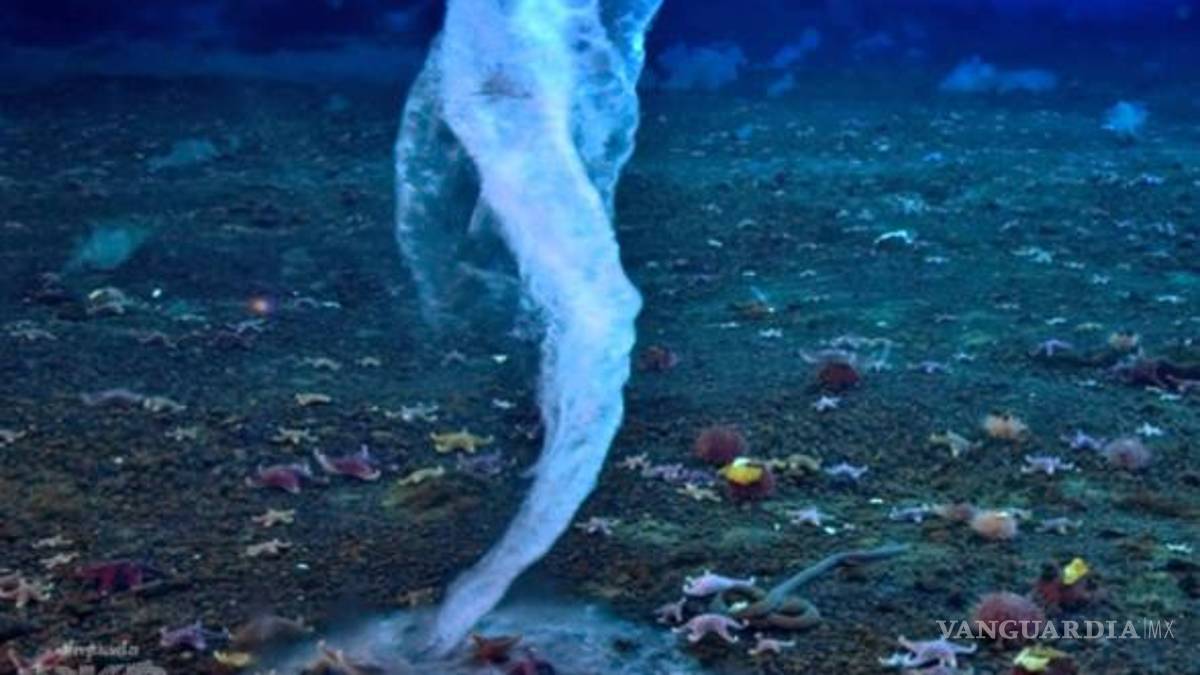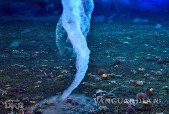 Este conducto va descendiendo hasta alcanzar el fondo marino. En este momento, el torrente de agua helada explota como una bomba de hielo y congela la superficie y a cualquier animal o ser vivo que encuentre en su camino.