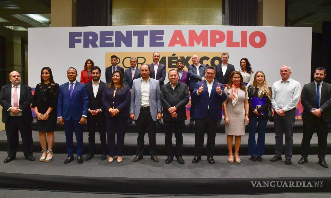 CDMX.- Las dirigencias del Partido Acción Nacional, el Revolucionario Institucional y el de la Revolución Democrática presentaron a los integrantes del Observatorio Ciudadano del Frente Amplio por México.