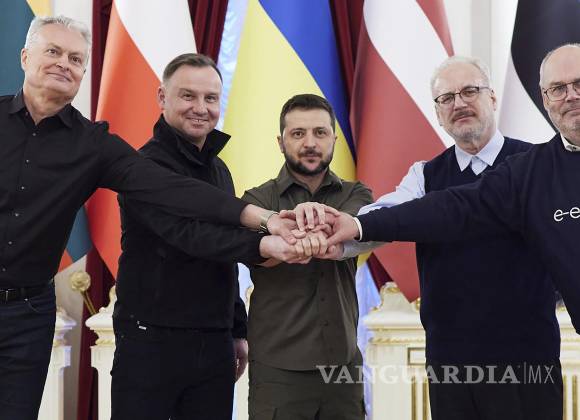 KIEV, UCR.- Los presidentes de Polonia, Andrzej Dud; Estonia, Alar Karis; Lituania, Gitanas Nauseda, y Letonia, Egils Levits, visitaron ayer las zonas destruidas por las tropas rusas en la región de Kiev en un viaje de solidaridad con Ucrania.