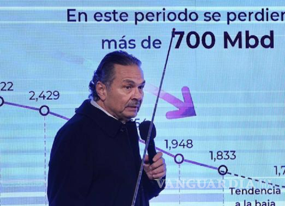 El titular de Pemex explicó que al finalizar el 2024, se espera que las seis refinerías produzcan un millón 512 mil barriles diarios