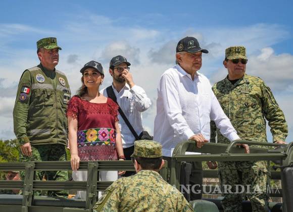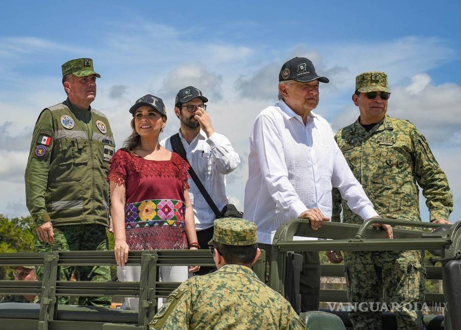En el video difundido se observa que el Mandatario federal recorrió la obra -con casco de protección- a bordo de un vehículo, acompañado de la gobernadora Mara Lezama y del general Luis Cresencio Sandoval, secretario de la Defensa Nacional (Sedena).