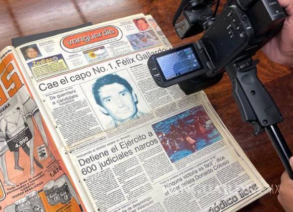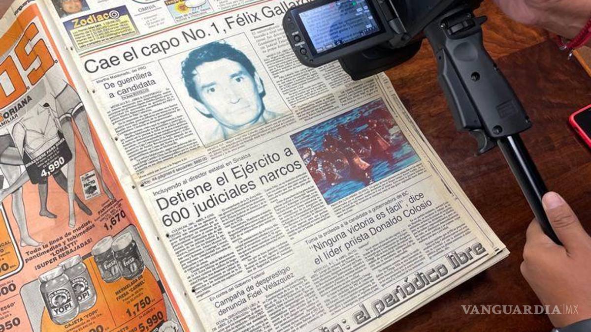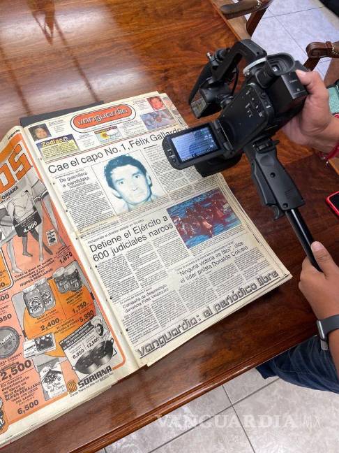 Personal de Telemundo acudió a las instalaciones de Vanguardia para recabar información sobre el caso, donde en primera plana, se dio a conocer la captura del narcotraficante, en aquel lejano 1989, ‘Cae el capo número 1, Félix Gallardo’.