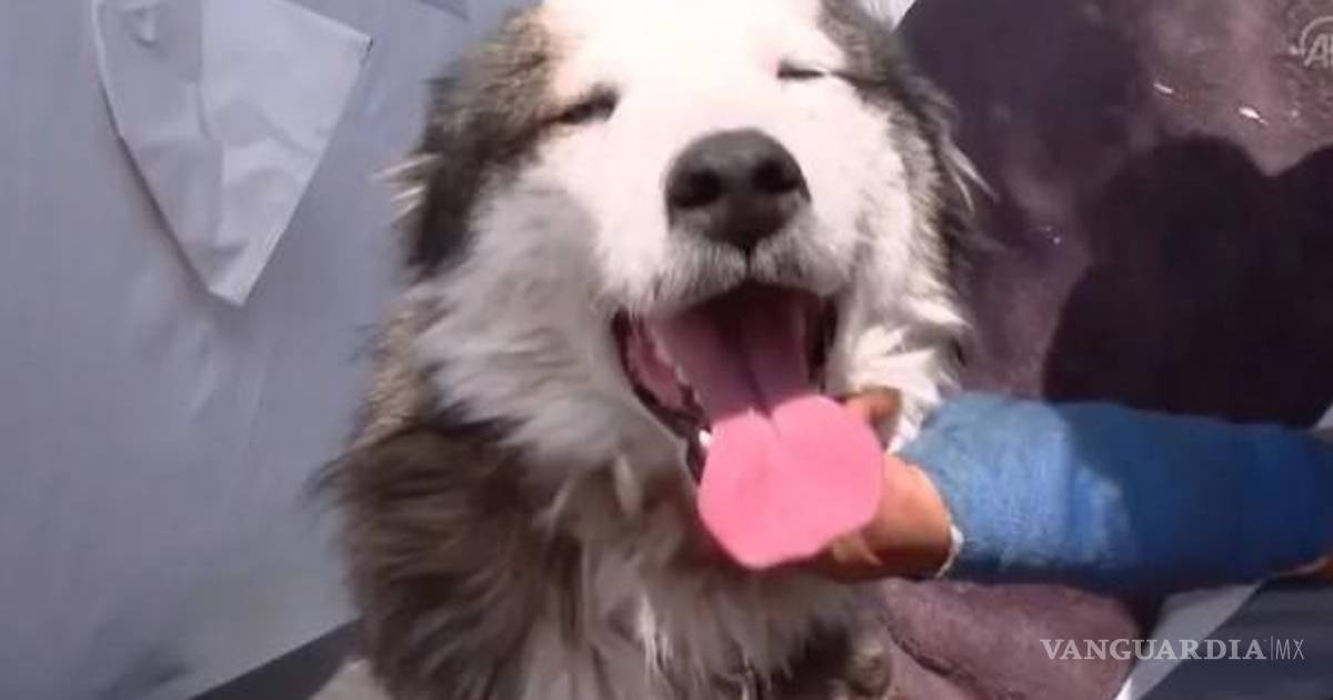 El video del rescate mostró equipos arrastrándose debajo de los restos de edificios nivelados gritando el nombre del perro antes de que una persona emergiera con el husky en sus brazos.