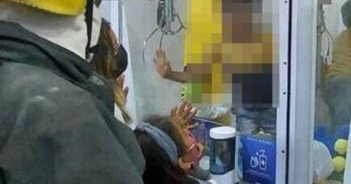 En la imagen compartida por el cuerpo de bomberos a través de su Twitter, el menor se observa dentro de la máquina, encima de los peluches.