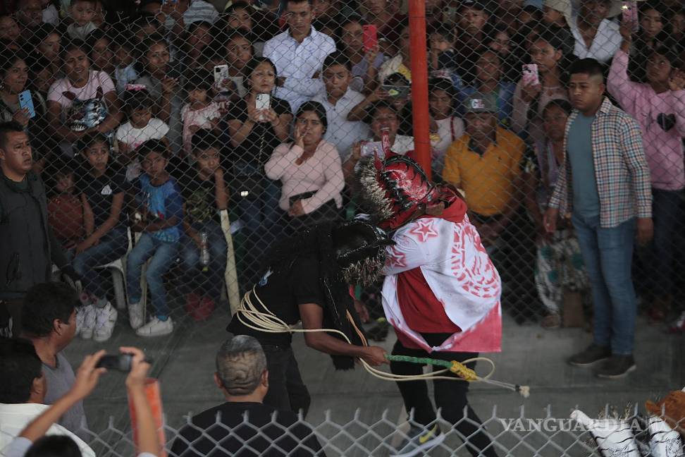 El ritual transcurre dentro de una especie de jaula para evitar que las aglomeraciones perturben los encuentros; la tradición fue modificada en 2017 por la inseguridad que permeó la región.