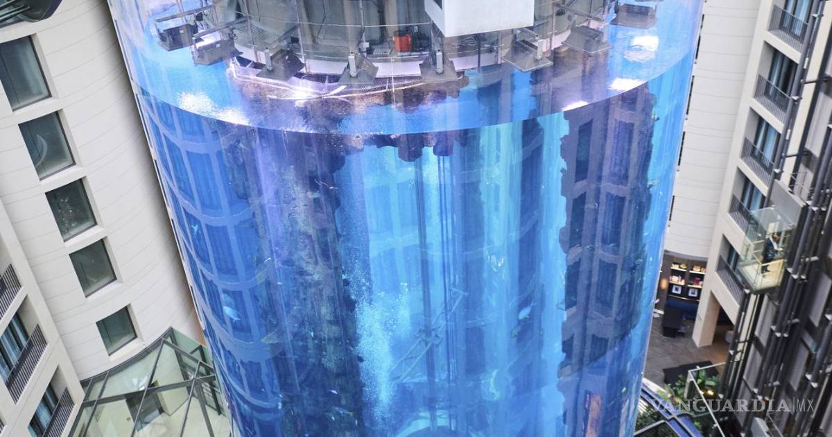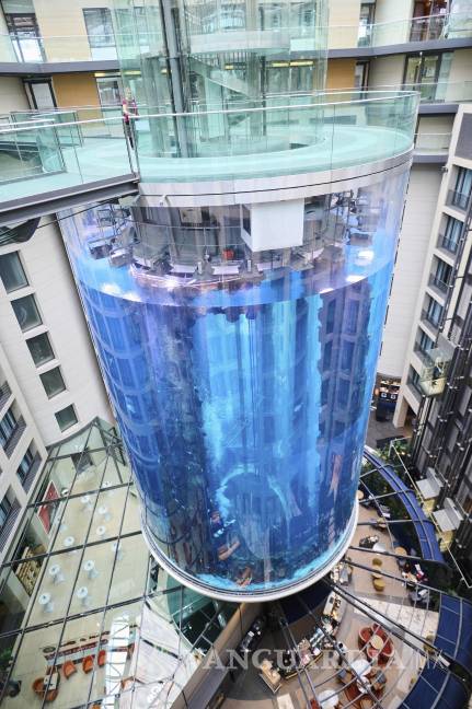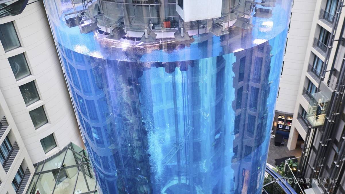 El AquaDom, de 25 metros de altura, era descrito como el tanque cilíndrico más alto del mundo, y contenía mil 500 peces tropicales