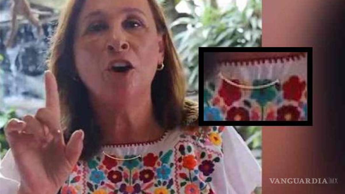 La aspirante de Morena y aliados usaba un colgante estilo “smile” extragrande en oro rosa de 18 kilates sobre una blusa bordada