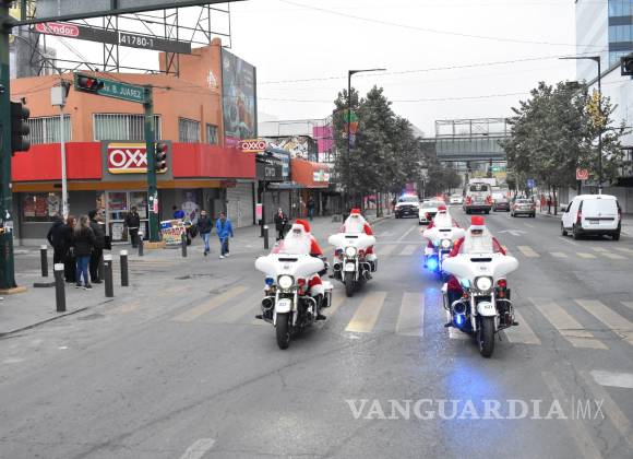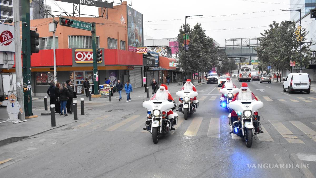 Santa Claus recorre las calles de Monterrey: oficiales de Tránsito vestidos piden prudencia al manejar