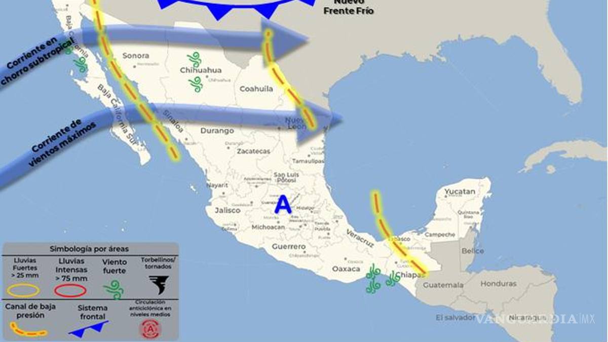 El Servicio Meteorológico Nacional de la Conagua pronostica que el próximo sábado 4 de diciembre se pronostica ingrese el sistema con lluvias, fuertes vientos y posibles tolvaneras para Chihuahua, Coahuila, Nuevo León y Tamaulipas.