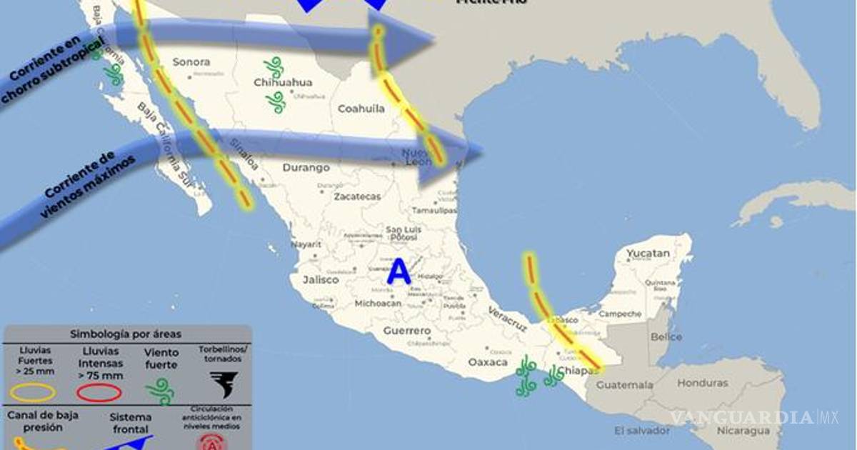 - Viento con rachas de 50 a 60 km/h: Coahuila, Nuevo León y Tamaulipas.