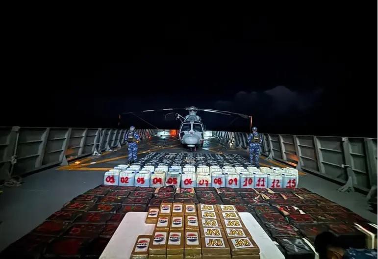 En lo que va de la administración, los decomisos suman cifras históricas: más de 48 toneladas de cocaína, alrededor de 90 mil 600 litros de combustible robado, 61 embarcaciones aseguradas, dos naves de bajo perfil confiscadas, 159 motores fuera de borda, y 208 personas detenidas en altamar.