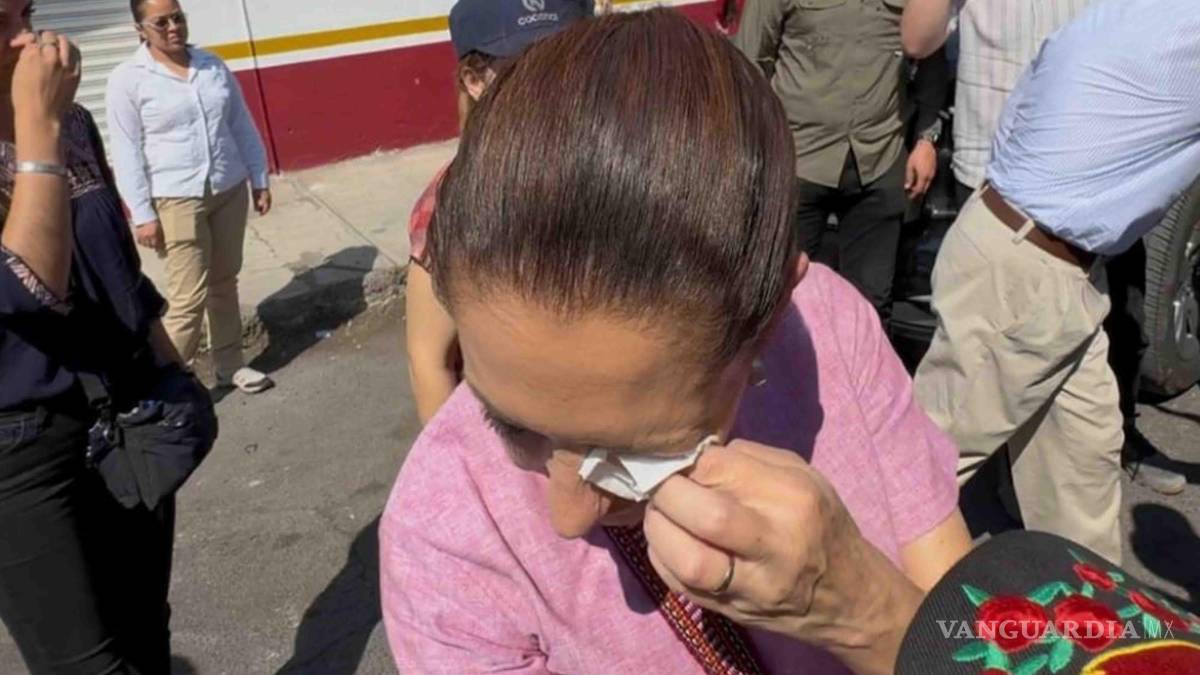 Durante el saludo, una persona alcanzó accidentalmente su rostro, lo que provocó molestia inmediata en el ojo izquierdo. Ante el incidente, la mandataria mexicana reaccionó echando el cuerpo hacia atrás y se le extendió un pañuelo para cubrirse.