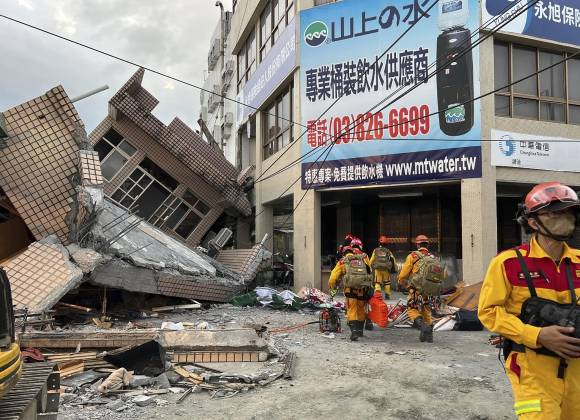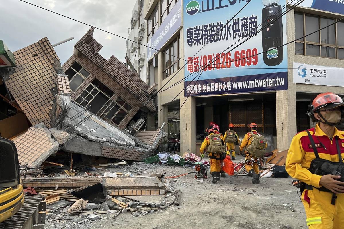Un fuerte sismo sacudió gran parte de Taiwán el domingo, derribó un edificio de tres pisos y atrapó temporalmente a cuatro personas adentro, dejó varados a unos 400 turistas en la ladera de una montaña y descarriló parte de un tren de pasajeros.