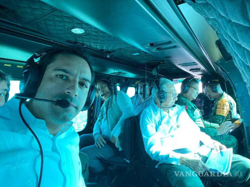 El sobrevuelo se dio después del desayuno del presidente López Obrador, quien culminó la conferencia mañanera poco antes de las 9:00 horas, para reunirse con Vila Dosal y su gabinete de seguridad, en donde almorzaron cochinita pibil y panuchos.