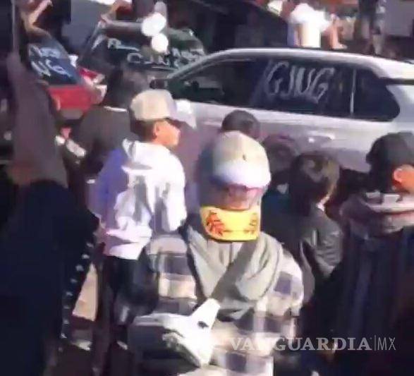 En un primer clip de 27 segundos se puede ver al menos cuatro vehículos que en las ventanas trae escrito “Feliz Día de Reyes” o simplemente “CJNG”, algunas unidades también iban adornadas de un par de globos blancos. Se ve una multitud de gente, con niños y niñas en primeras filas.