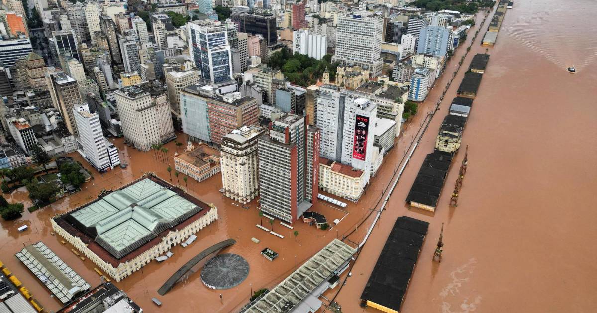 El río Guaíba, que fluye a lo largo de la capital del estado, Porto Alegre, vio subir el nivel del agua hasta los 4,8 metros el lunes por la mañana, por debajo del récord de la semana pasada de 5,35 metros, pero más significativo que el pico de 4,76 metros de las históricas inundaciones de 1941. Se espera que las lluvias continúen el lunes.