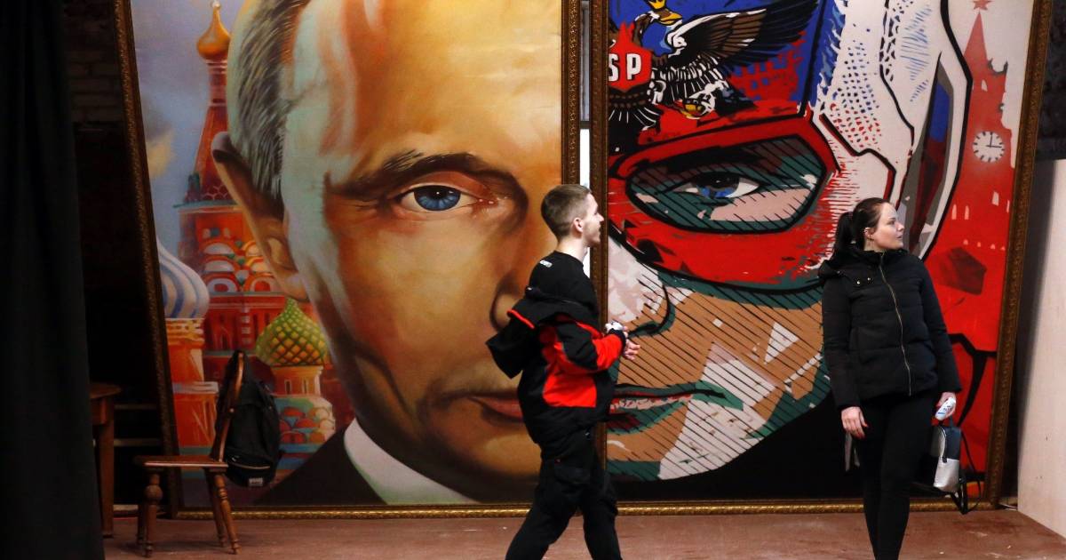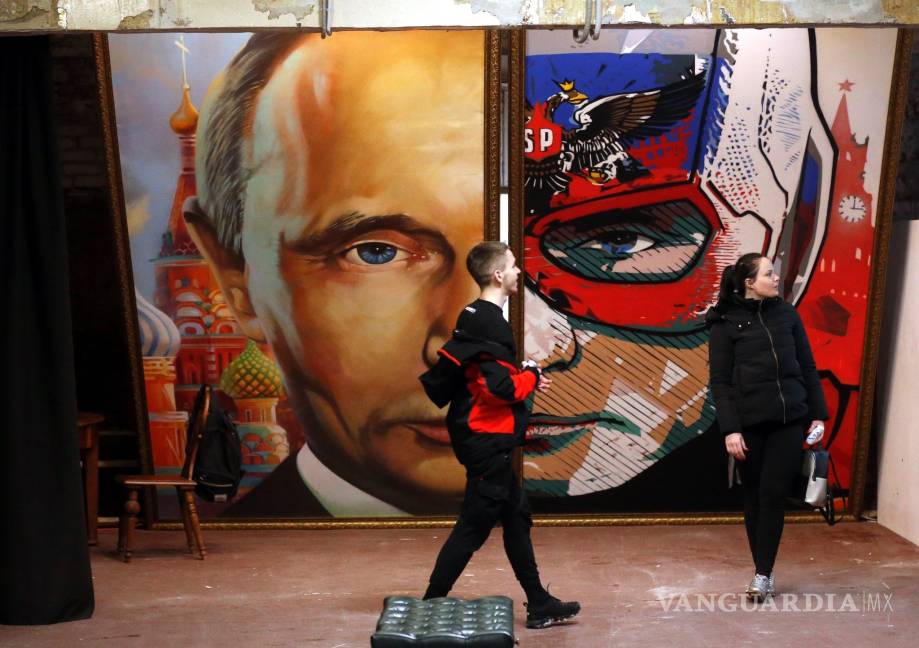La exposición incluye el retrato más grande que se ha hecho nunca de Putin y que muestra sus dos caras, la de mandatario con la Plaza Roja al fondo y la de superhéroe enmascarado inasequible al desaliento con los colores de la bandera tricolor rusa.