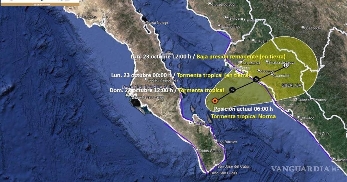 ⚠️🇲🇽 El centro de la #TormentaTropical #Norma se localiza en aguas del #GolfoDeCalifornia y se mantiene con rumbo hacia el norte de #Sinaloa.