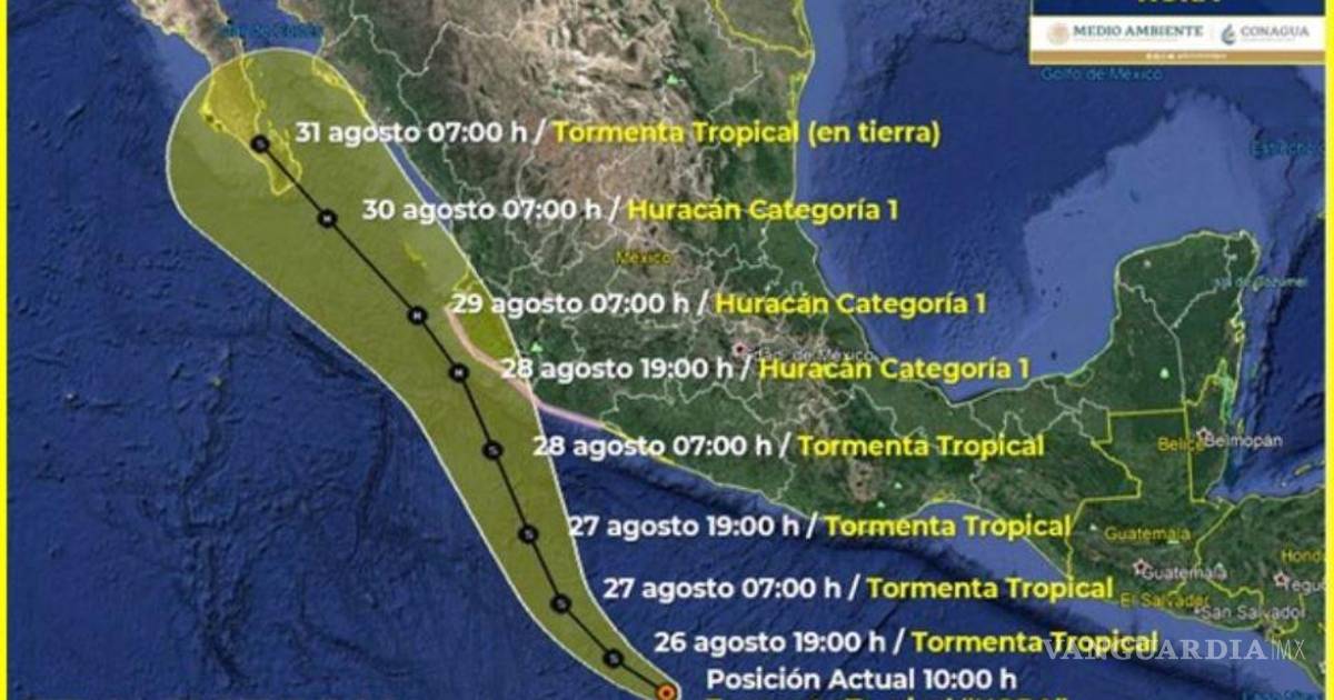 Se espera que para sábado se localice muy cerca de las costas de Colima, Jalisco y Nayarit, ya como huracán categoría 1.