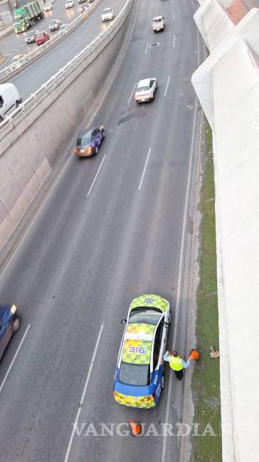 “El vehículo tipo transporte perdió el control por falla de la dirección hidráulica impactándose en el barandal de contención, derribando 10 metros aproximadamente del barandal, cayendo hacia abajo del paso del desnivel”, detalló PCNL.