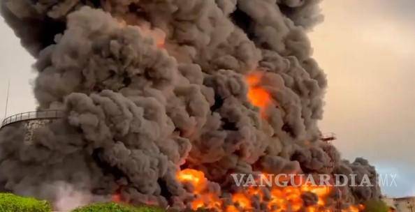 Más tarde escribió en Telegram que un solo dron logró provocar el enorme incendio, que se había apagado el sábado por la noche.