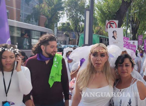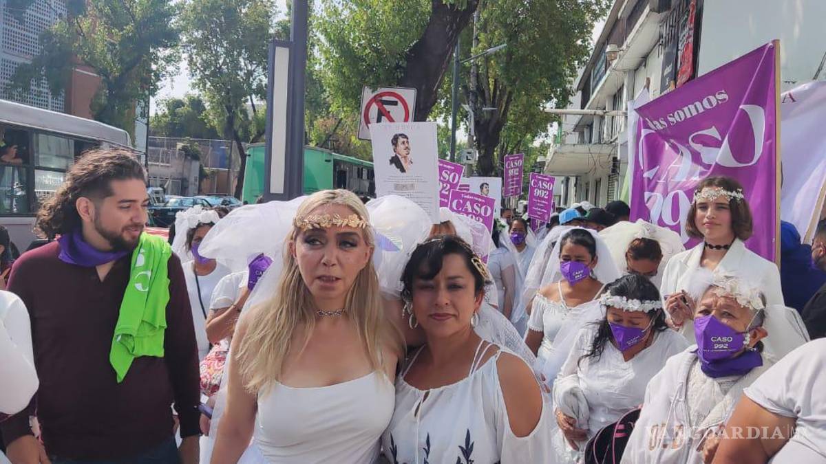 Vestidas de novia, porque consideran que las representa abandonadas, decenas de mujeres fueron motivo de una fuerte movilización en pro de las víctimas de la violencia vicaria, cargando pancartas y lanzando cánticos hacia la dependencia capitalina.