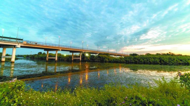 Cientos de hombres y mujeres cruzando en ambos sentidos el Río Bravo, cargando alimentos para su familia, algunos con niños pequeños en sus hombros.